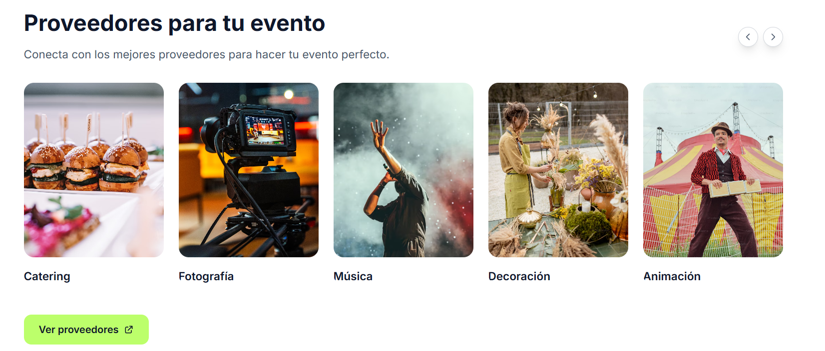 En SpacePal podés filtrar por tipo de evento y ver proveedores especializados según tu necesidad.